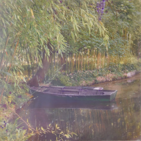 The Gardener's Boat in the Bamboo Cove An Original 16 x 16 Photographic Encaustic on Birch Panel